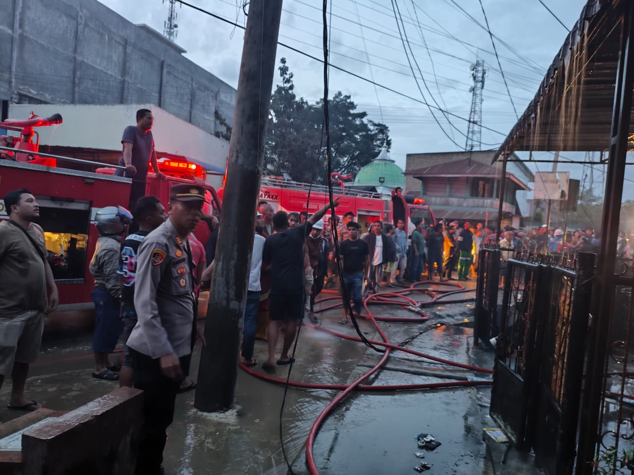 Dua rumah warga di Jl. Midian Sirait Kelurahan Pasar Porsea Kecamatan Porsea Kabupaten Toba hangus terbakar, Jumat (28/11/2025) sekira pukul 17.30 Wib.