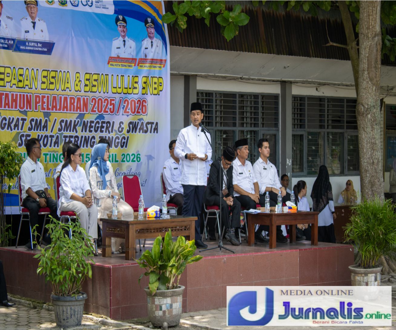 Apresiasi tersebut disampaikan Wali Kota dalam acara seremonial Pelepasan Siswa-Siswi Lulus SNBP se-Kota Tebing Tinggi yang digelar di halaman SMAN 2, Jalan KL. Yos Sudarso, Rabu (15/4/2026).