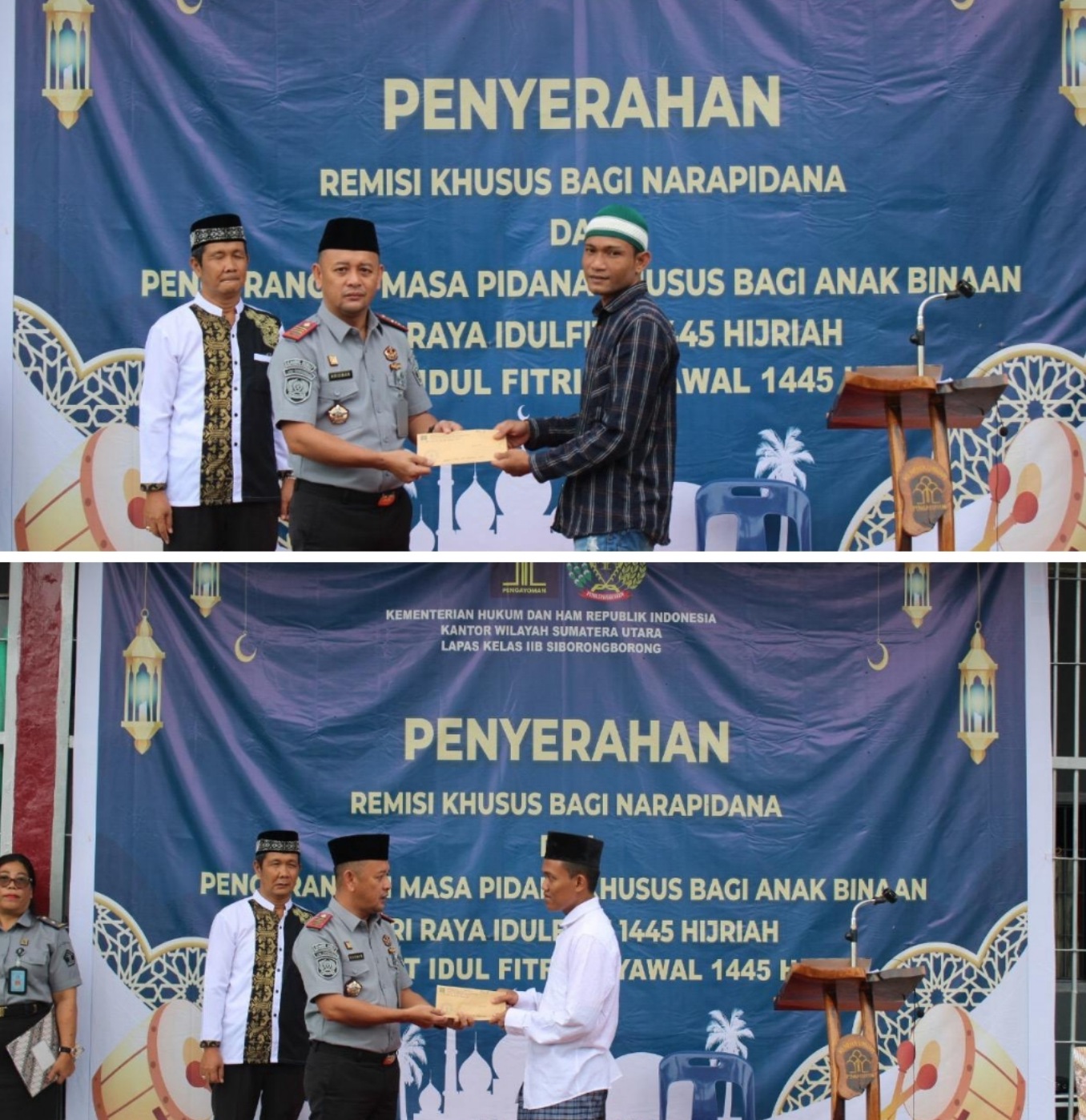 Sebanyak 489 orang Narapidana Warga Binaan Pemasyarakatan (WBP) Lembaga Pemasyarakatan Kelas IIB Siborongborong mendapat Remisi Khusus Hari Raya Idul Fitri 1445 Hijriah.