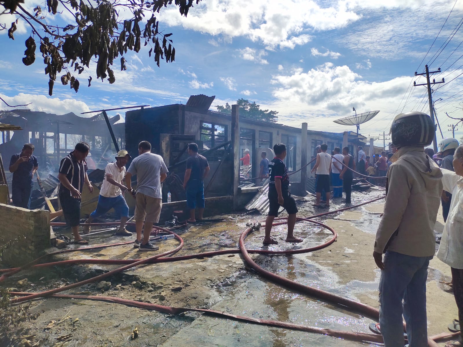 Menurut keterangan Bungaran, Pada hari Sabtu tanggal 07 Desember 2024 sekira pukul 13.00 Wib pada saat Dewi Boru Samosir memasak air dan meninggalkan anaknya Kevin Manurung (10) dirumah dan selang beberapa saat tiba-tiba gas meledak dan Kevin Manurung (anak Dewi Samosir) meminta tolong kepada tetangga Rakbin Silalahi dan tetangga mencoba untuk memadamkan api akan tetapi tidak sanggup dan setelah beberapa saat api membesar dan rumah sebanyak 5 unit terbakar.