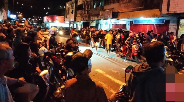 Aparat kepolisian yang tiba di lokasi langsung mengatur lalulintas yang sempat tersendat. Nobar pun kembali digelar dan dipadati warga di kawasan Jalan AM Sangaji.