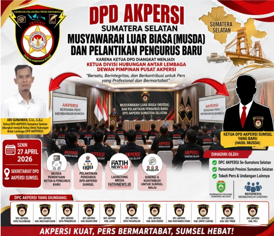 Tak hanya itu, momen penting ini juga akan dimeriahkan dengan peluncuran (launching) media FatihNews.id. Hal ini merupakan kontribusi nyata AKPERSI dalam memperkuat ekosistem media yang profesional, independen, dan berintegritas di Sumatera Selatan.