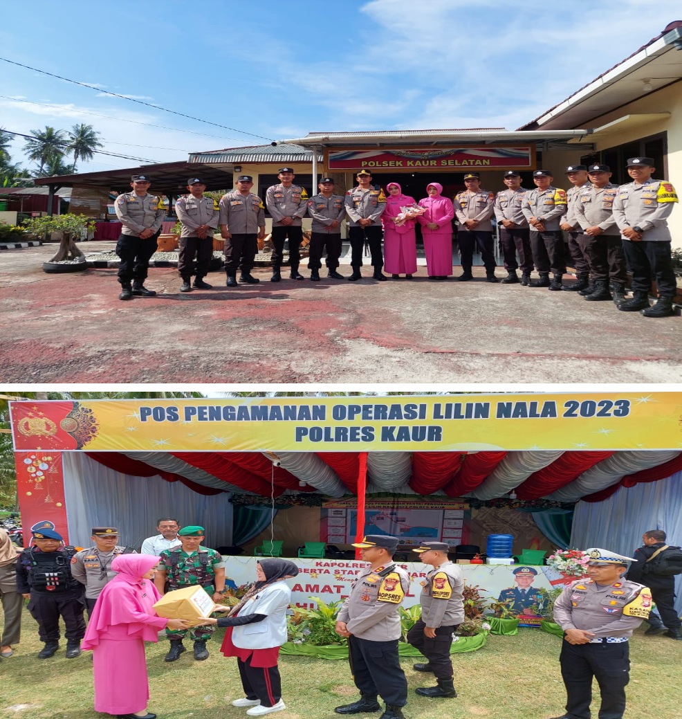 Dalam kesempatan itu juga, Kapolres Kaur dan Ketua Bhayangkari juga melakukan kunjungan Ke Pos Pengamanan Ops Lilin Nala 2023 di Pantai Pengubaian. Sekaligus menyerahkan bingkisan berupa makanan dan minuman tambahan bagi personil yang sedang melaksanakan tugas pengamanan.