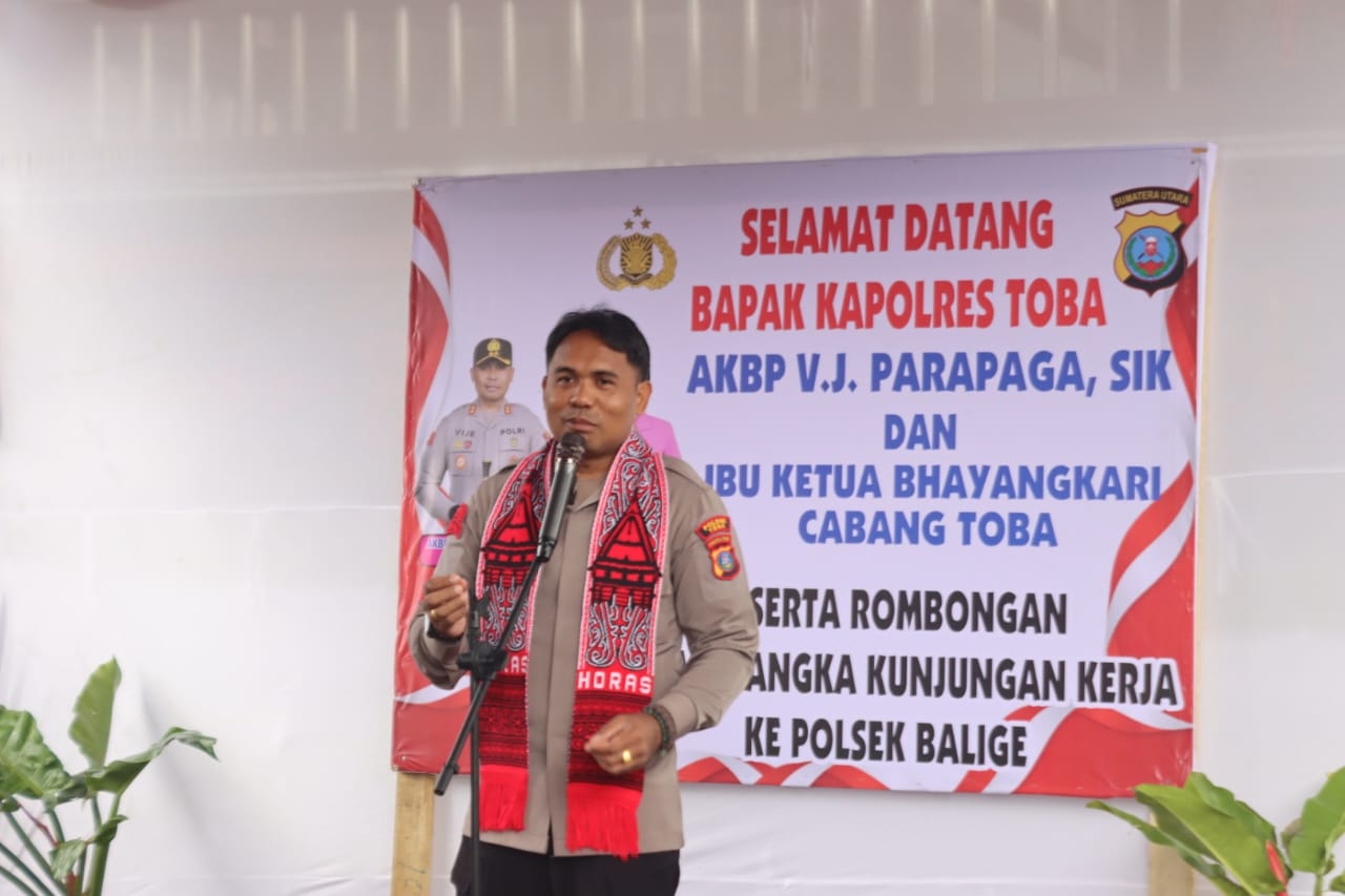 Setibanya di Polsek Balige, Kapolres Toba AKBP V.J Parapaga langsung disambut hangat oleh Kapolsek Balige AKP Slamet Pasaribu bersama Camat Balige, Camat Tampahan, Kepala Desa, Tokoh agama, Tokoh adat, tokoh masyarakat, Tokoh pemuda, Bhayangkari Polsek Balige serta insan Pers.