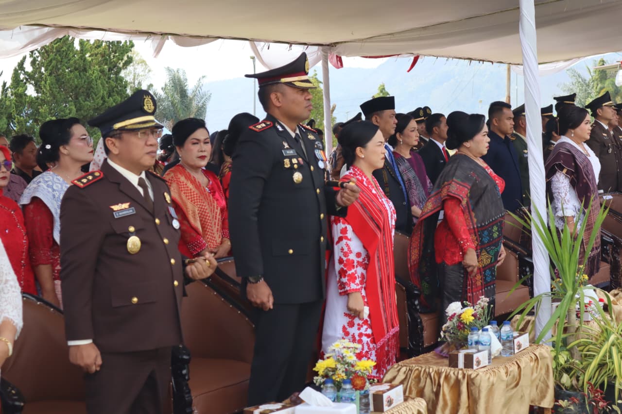 Kapolres Toba AKBP Vinsensius Jimmy Parapaga, SH, S.I.K hadiri upacara peringatan detik detik Proklamasi Kemerdekaan Republik Indonesia Ke-80 di Lapangan Kantor Bupati Kabupaten Toba Provinsi Sumatera Utara, Minggu (17/8/2025).