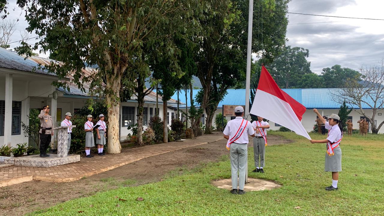 Kapolsek Lumban Julu AKP Rudy E Sitohang SH, memimpin Apel Upacara dan sekaligus memberikan pesan-pesan Kamtibmas kepada para siswa/siswi SMAN 1 Lumban Julu.