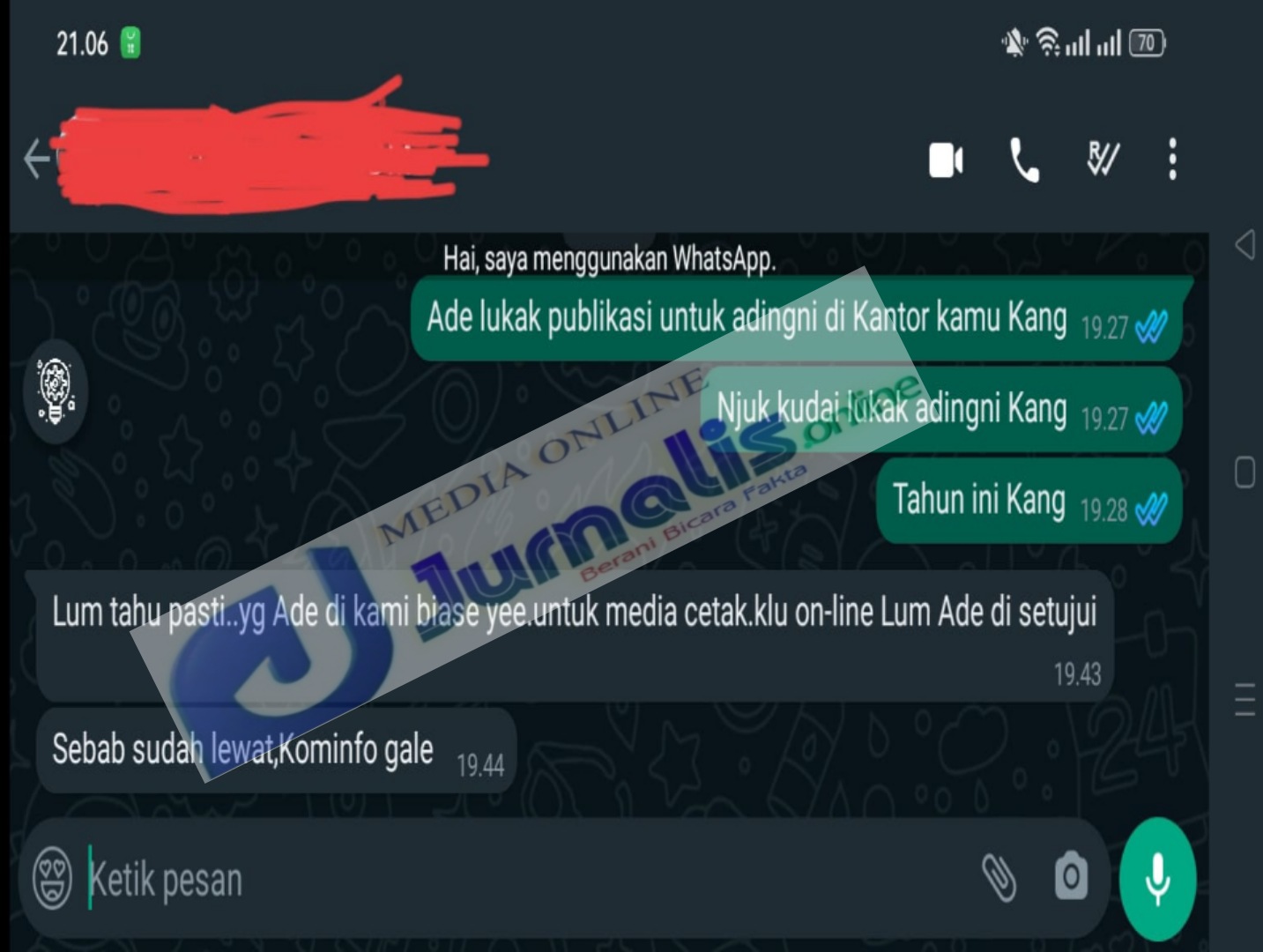 Namun pada kenyataannya, oknum Pejabat itu menjawab pesan singkat dari seorang oknum jurnalis tersebut membuat perasaan kecewa yang begitu besar, “Belum tahu pasti, yang biasanya ada dikami media cetak, kalau online belum ade disetujui, sebab sudah lewat Kominfo,” jawab oknum Pejabat tersebut.