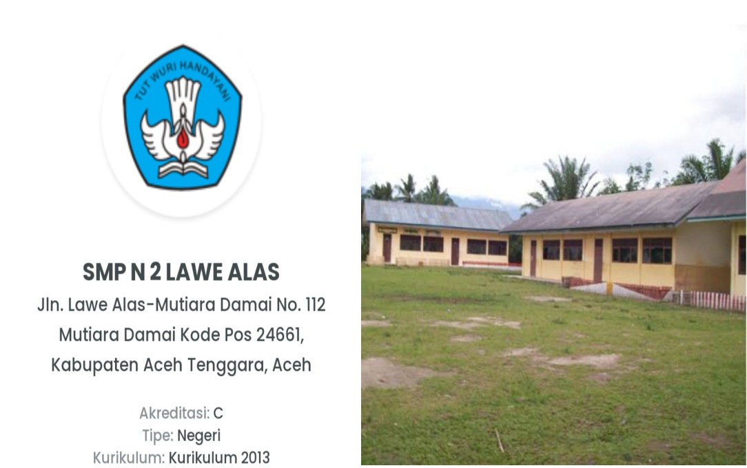 Sekolah Menengah Pertama (SMP) Negeri 2 Lawe Alas adalah salah satu satuan pendidikan dengan jenjang Tingkat Pertama di Kecamatan Babul Rahmah Kabupaten Aceh Tenggara, dimana kita ketahui SMP Negeri 2 Lawe Alas juga berada dibawah naungan Dinas Pendidikan dan kebudayaan kabupaten Aceh Tenggara (Dikjar) Agara.