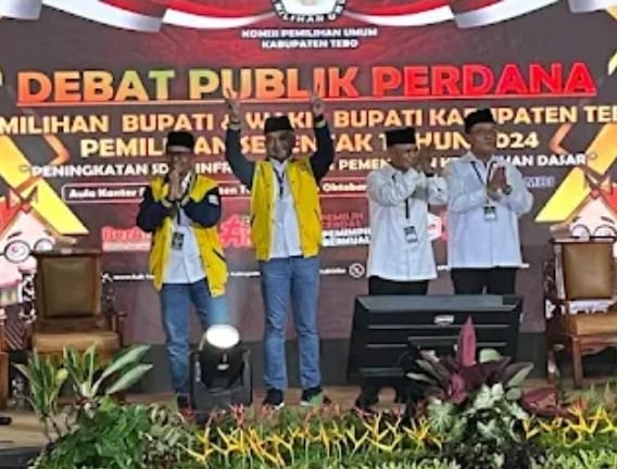 TEBO – // Jurnalis.online // Komisi Pemilihan Umum (KPU) Kabupaten Tebo menyelenggarakan debat publik pertama untuk Calon Bupati dan Wakil Bupati Kabupaten Tebo. Debat dengan tema “Peningkatan SDM, Infrastruktur, dan Pemenuhan Kebutuhan Dasar” ini berlangsung di Aula DPRD Kabupaten Tebo, Kamis (31/10/2024).