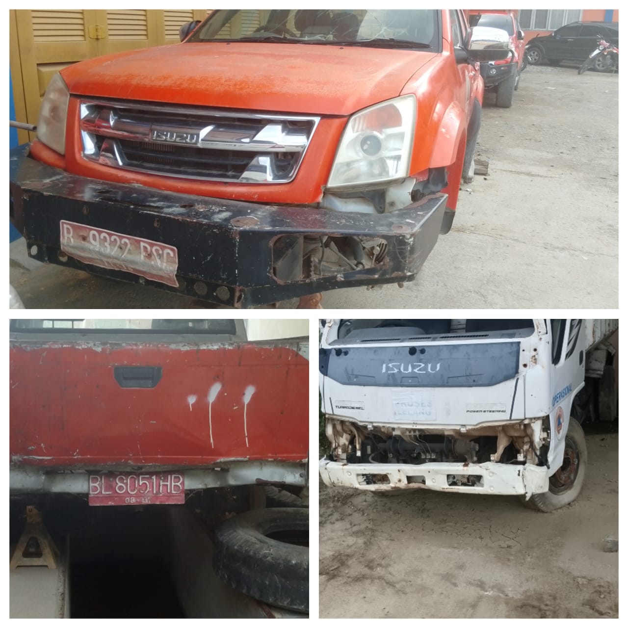Mobil dinas Badan Penanggulangan Bencana Daerah (BPBD), banyak yang rusak dan terkesan tak terurus di komplek BPBD kabupaten Aceh Tenggara, Senin (8/12).