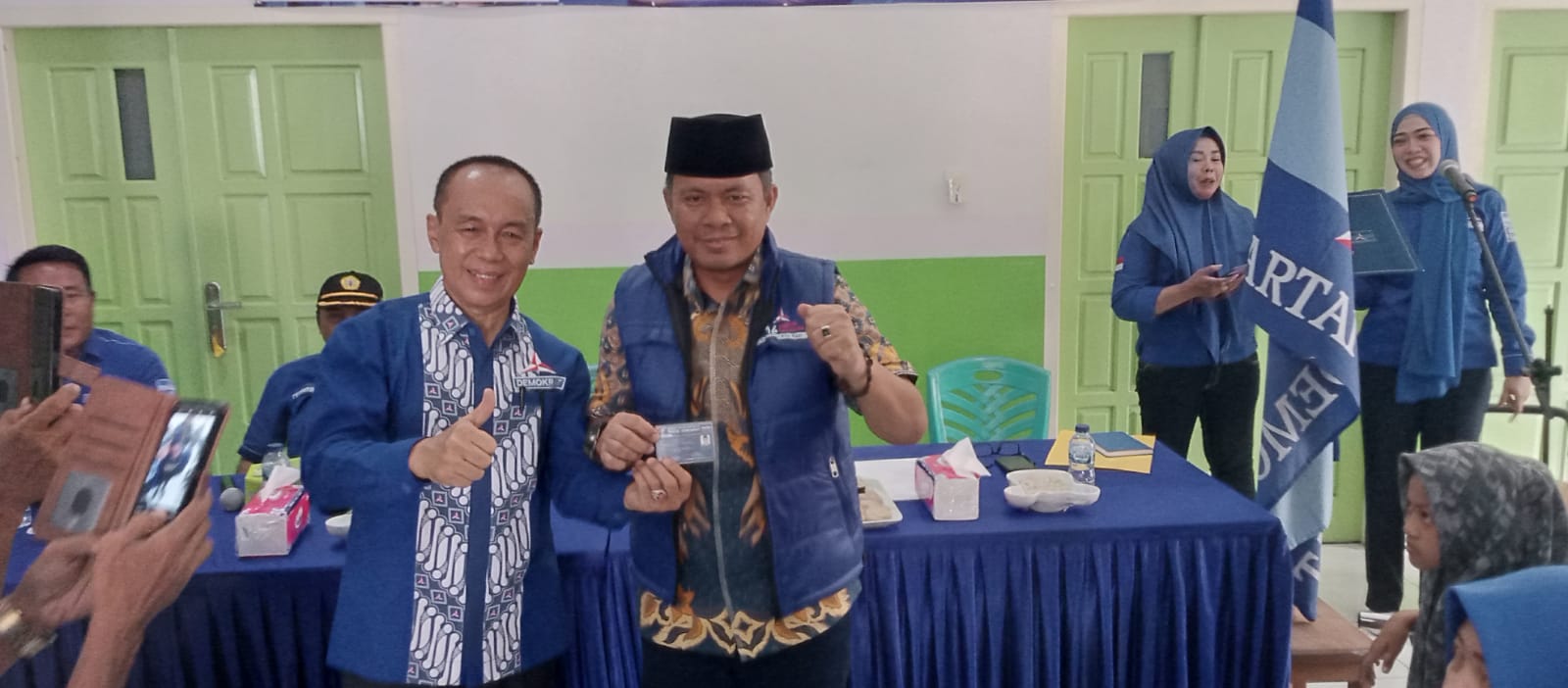 Jambi-Tebo//Jurnalis.online//– Nazar Efendi, calon Wakil Bupati yang berpasangan dengan Agus Rubianto dalam Pilkada Kabupaten Tebo, kini resmi bergabung dengan Partai Demokrat. Peresmian ini ditandai dengan penyerahan baju kebesaran partai berlogo bintang merci dan Kartu Tanda Anggota (KTA) di Kantor DPC Partai Demokrat Kabupaten Tebo, yang terletak di Jalan Asoy KM 3, Jalan Nasional Lintas Tebo Bungo.