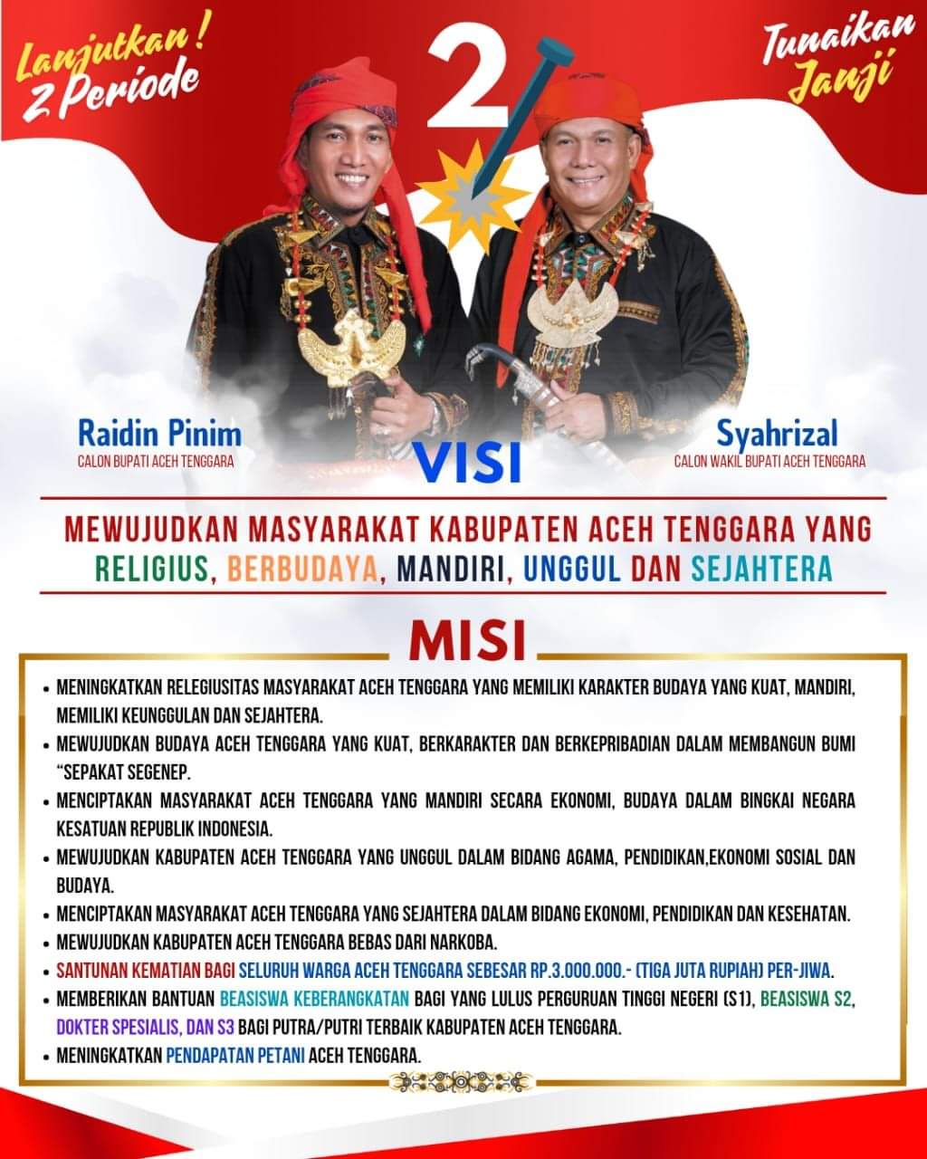 “Acara ini diharapkan bisa langsung menyentuh masyarakat dan juga menyampaikan visi-misi pasangan langsung di tengah-tengah masyarakat. Nah, sekarang ini dalam kampanye akbar kita menginginkan semua warga masyarakat yang hadir bisa mendengarkan langsung visi-misinya Raidin Pinim-Syahrizal,” tuturnya.