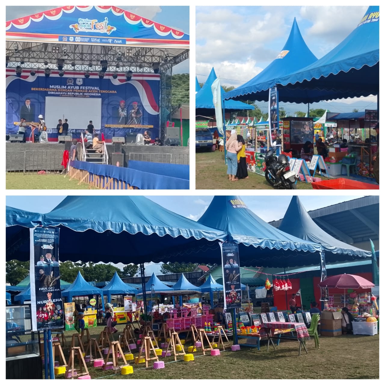 Sejumlah pelaku Usaha Mikro Kecil Dan Menengah (UMKM) menjajakan dagangan di Event Festival Anggota DPR RI Partai Nasdem Muslim Ayub Fest, berlangsung di Stadion H Syahdat, Aceh Tenggara mengeluh mahalnya sewa lapak dagangan, Senin (18/8/2025).