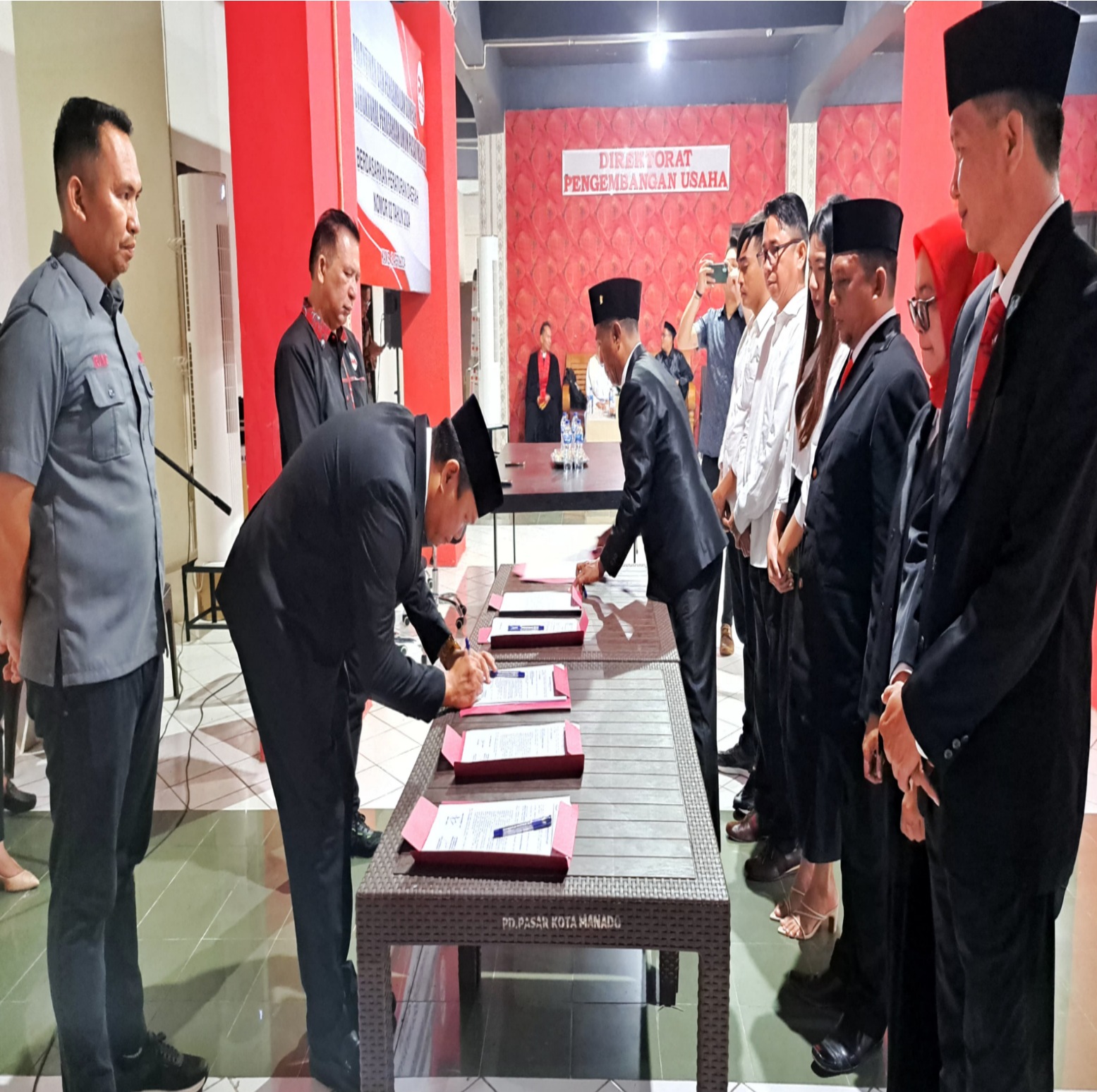 MANADO – // Jurnalis.online // Beralihnya nomenklatur Perusahaan Daerah (PD) menjadi Perusahaan Umum Daerah (Perumda), pada Perusahaan Pasar Manado 13 Februari 2024. Maka berdasarkan Peraturan Daerah nomor 02 Tahun 2024 Direksi bersama Dewan Pengawas Pasar Manado melakukan penyesuaian jabatan dengan melantik sejumlah pegawai, Kamis (18/04/2024).