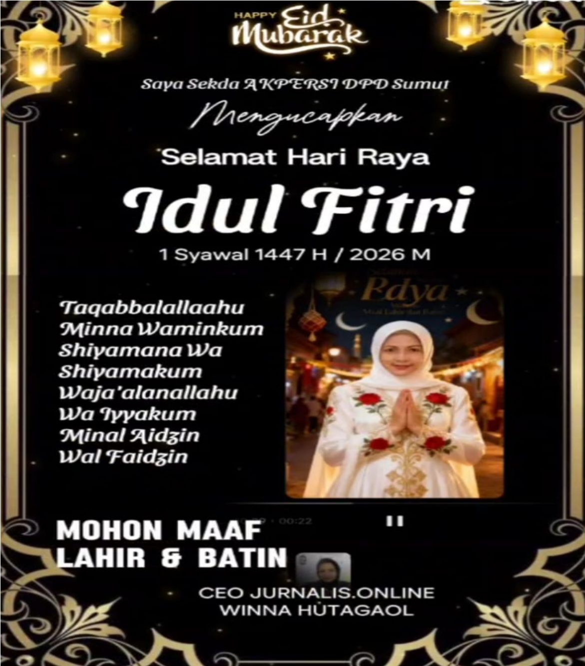 Pimpinan Redaksi media Jurnalis.Online mengucapkan selamat Hari Raya Idul Fitri 1447 Hijriah kepada seluruh pembaca, rekan kerja, dan masyarakat luas, Sabtu (21/3/2026).