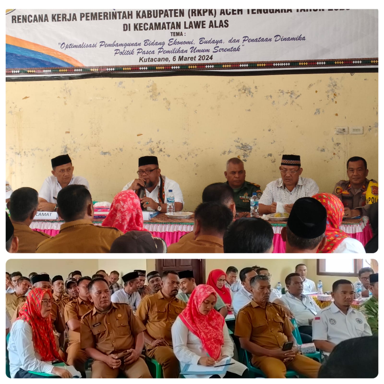 Musrenbang RKPK Tahun 2025 tingkat Kecamatan yang digelar di Aula Kantor Camat Lawe Alas dihadiri oleh Hasanusi,Skd Anggota DPRK Agara, PLT Camata Lawe Alas (Mujibur Rahman.S.Sos), Sektaris Bapeda, Kapolsek Lawe Alas (Iptu Djuliar Yousnaidi), Danramil 0108-05/Lawe Alas (Lettu Inf Saruddin) serta Para Kepala Desa, dan Tokoh Masyarakat.