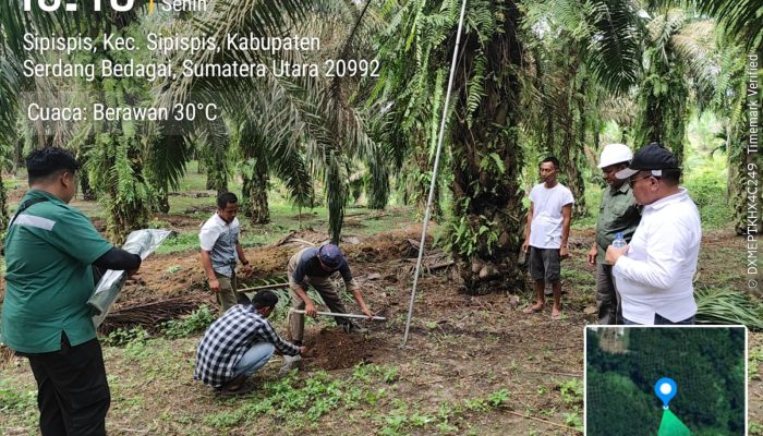 Serdang Bedagai – // Jurnalis.online // Tim manajemen Pabrik Kelapa Sawit PT Tenera Sergai Perkasa (PKS TSP) Silau Padang, melakukan pengambilan sampel daun dan tanah di areal land aplicaion (LA) yang berada di Dusun Sarekat, desa Silau Padang, Kecamatan Sipispis, Kabupaten Serdang Bedagai (Sergai), Senin (4/8/2025).