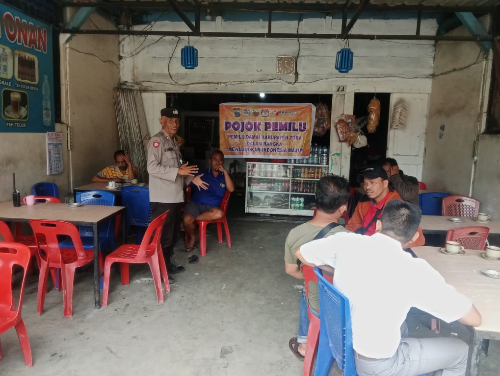 BALIGE – // Jurnalis.online // Polisi RW Polsek Balige Aiptu D Simamora bersama Brigadir Wesly Manik, laksanakan sambang dan kunjungan ke warga masyarakat binaan. Dalam rangka edukasi dan sosialisasi Pemilu Damai 2024 bertempat di salah satu warung Kopi Ranto Pardede Jl. Patuan Nagari No. 73 Balige, Kabupaten Toba Provinsi Sumatera Utara, Minggu (07/01/2024).