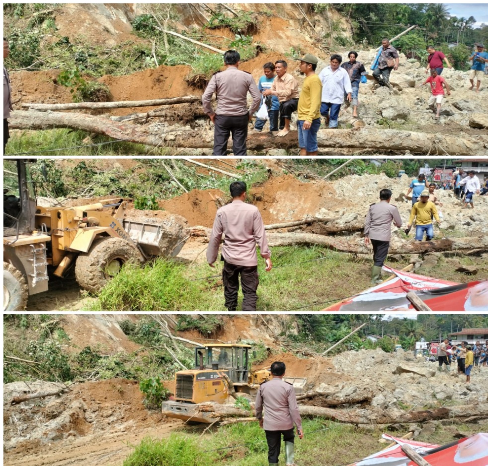 TAPUT – // Jurnalis.online // Polda Sumut dengan sigap bergerak cepat melakukan pembersihan material longsor yang menutupi akses Jalan Pahae Julu, Kabupaten Tapanuli Utara (Taput), Sabtu (23/12/2023) sekira pukul 10.00 Wib.