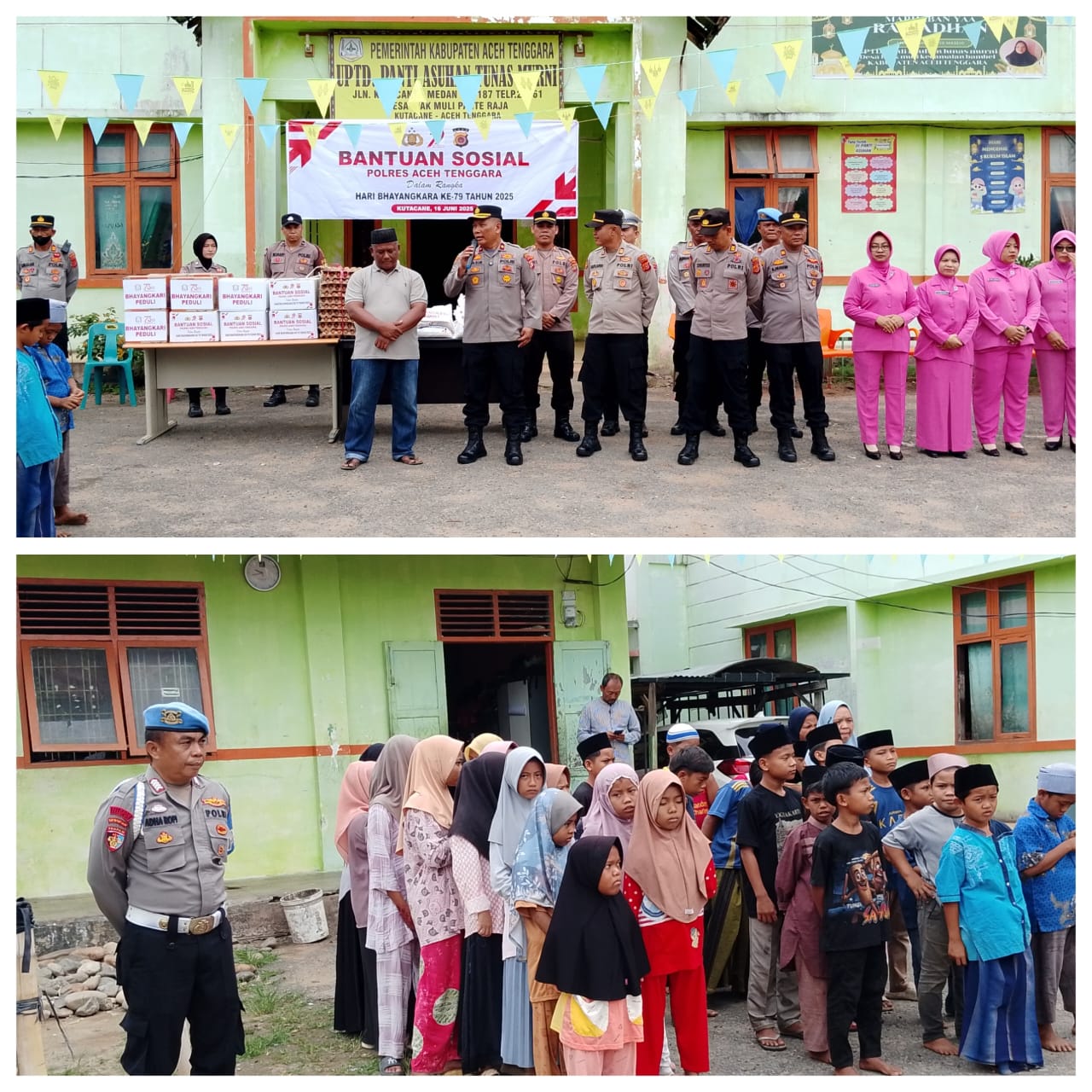 Polres Aceh Tenggara Berbagi Kebahagiaan Bersama Anak Yatim Dalam Rangka Hari Bhayangkara Ke-79
