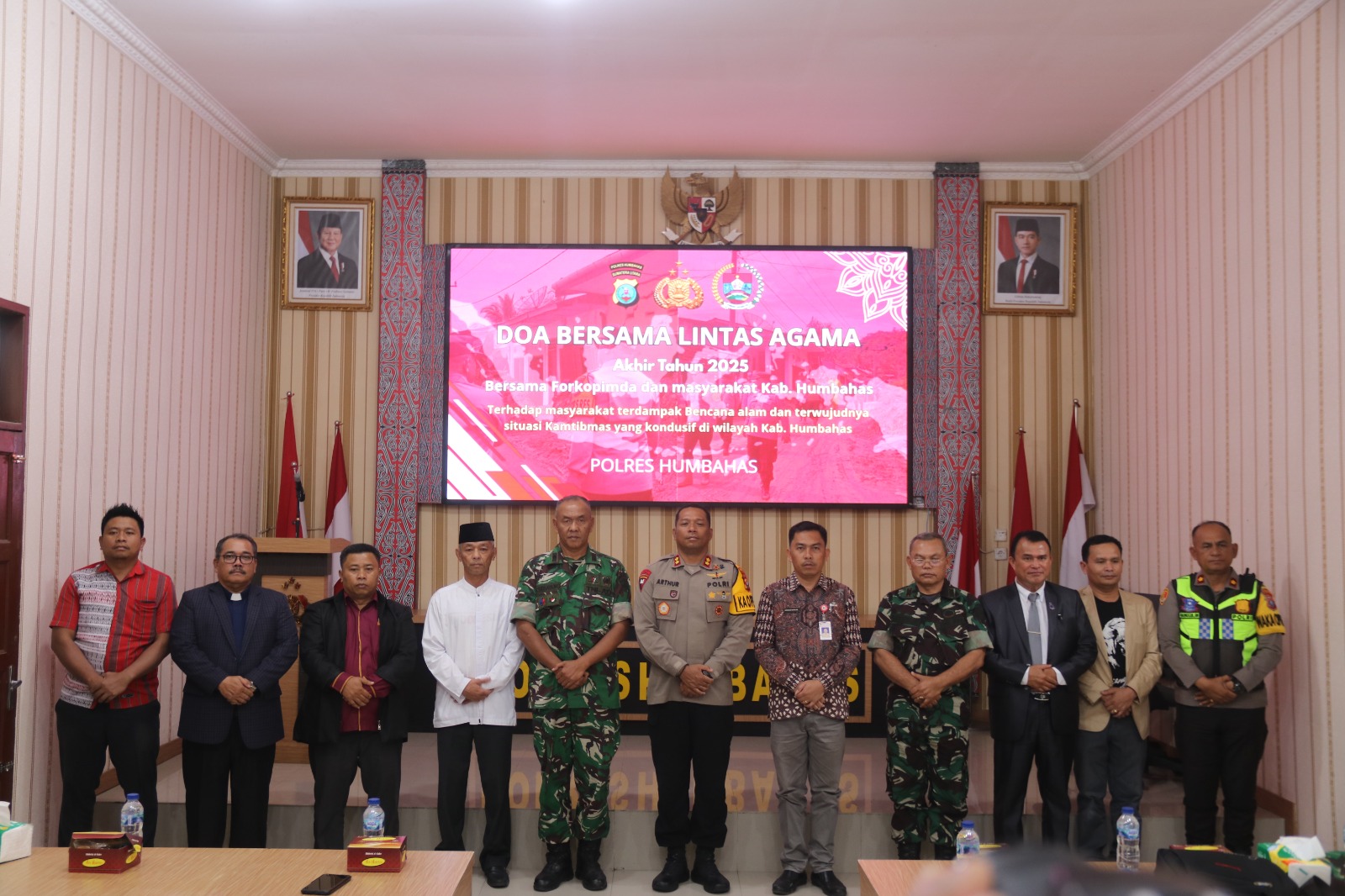 Menutup akhir Tahun 2025, Polres Humbang Hasundutan menggelar Doa Bersama Lintas Agama bersama Forkopimda dan masyarakat di Aula DP. Silitonga Polres Humbahas, Rabu (31/12/2025) sekira pukul 14.00 Wib.