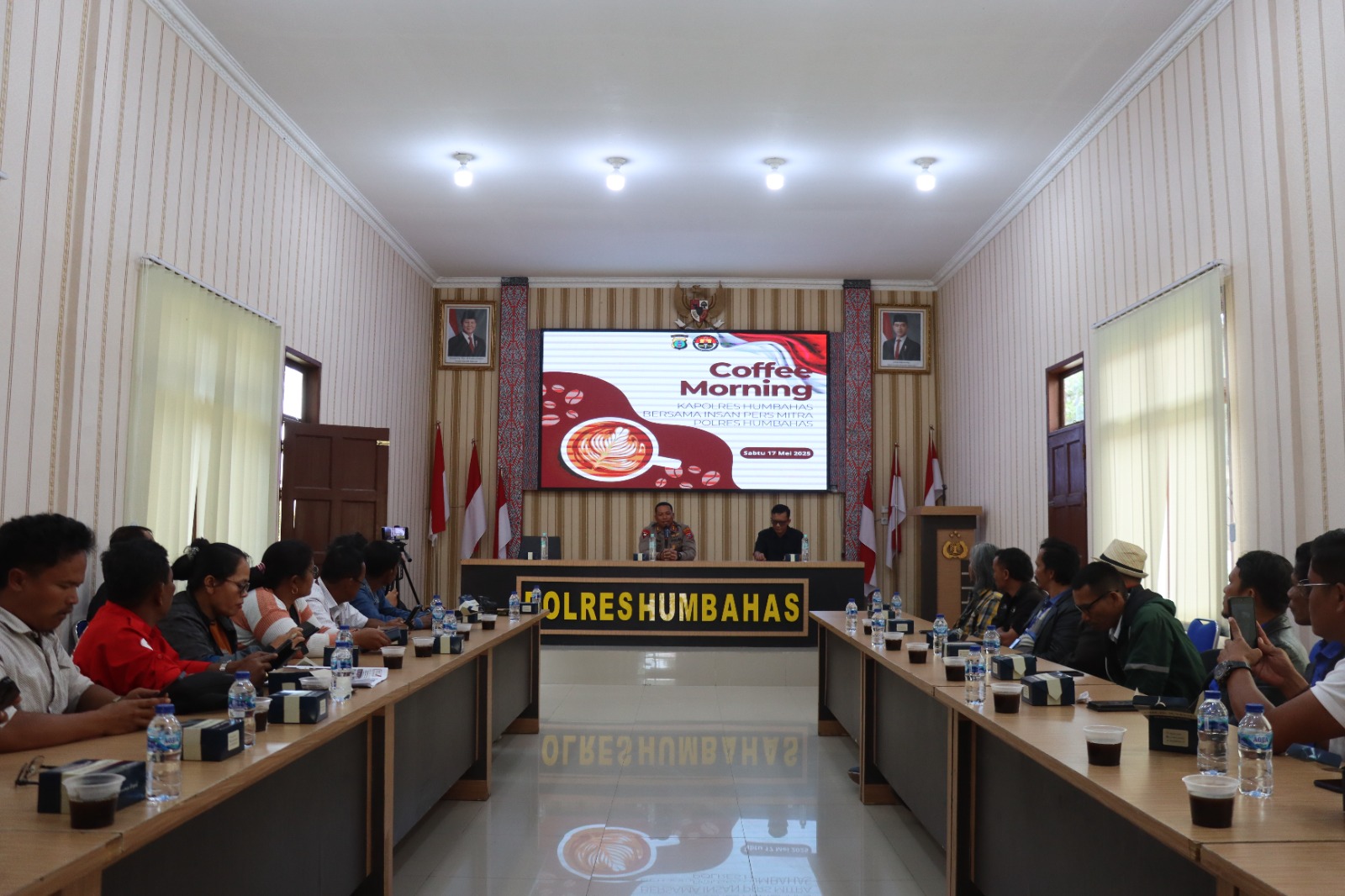 Humbahas – // Jurnalis.online // Kapolres Humbang Hasundutan AKBP Arthur Sameaputty S.I.K didampingi, Kasat Reskrim Iptu J.Siahaan S.H., M.H., dan Ps. Kasihumas AIPDA D, SITOMPUL S.E laksanakan giat Coffee Morning di aula DP. SILITONGA Polres Humbang Hasundutan bersama rekan media, sahabat dan mitra Polri, Sabtu (17/5/2025).