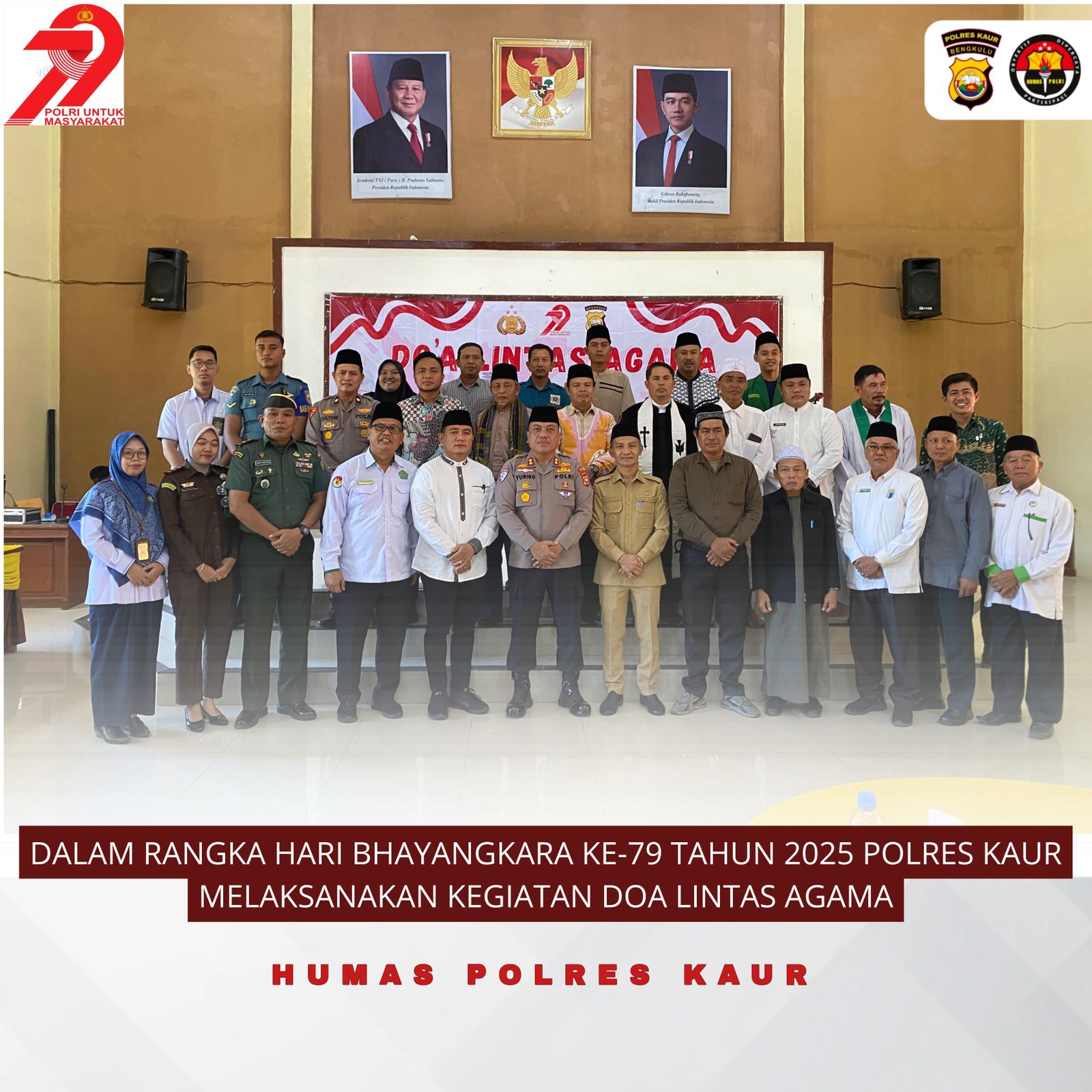Kapolres Kaur AKBP YURIKO FERNANDA, S.H., S.I.K., M.H. menyampaikan bahwa doa lintas agama yang digelar kali ini dalam rangka menyambut Hari Bhayangkara ke-79 tahun 2025.