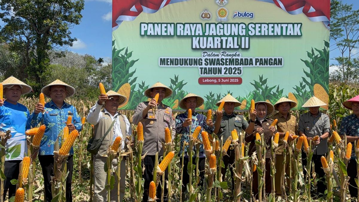 Kaur Bengkulu – // Jurnalis.online // Polres Lebong menggelar kegiatan panen raya jagung serentak Kuartal II, yang dirangkaikan dengan Ceremony Groundbreaking pembangunan serentak 18 Gudang Polri untuk penyimpanan Jagung, serta prosesi pelepasan keberangkatan ekspor perdana jagung ke Kuching, Malaysia. Acara ini berlangsung pada Kamis (05/06/2025) sekira pukul 10.00 Wib, bertempat di desa Tabeak Blau I, Kecamatan Lebong Atas.