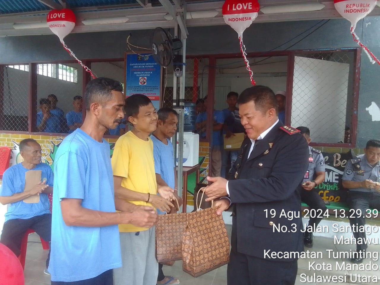 Manado – // Jurnalis.online // Bertempat di halaman Lapas Manado penyerahan hadiah bagi para pemenang dalam kegiatan lomba Hari Kemerdekaan Republik Indonesia Ke- 79, Senin (19/08/2024) Kalapas bersama jajaran memberikan hadiah beberapa lomba yang di laksanakan pada HUT RI Ke- 79 setelah Upacara Bendera 17 Agustus 2024.