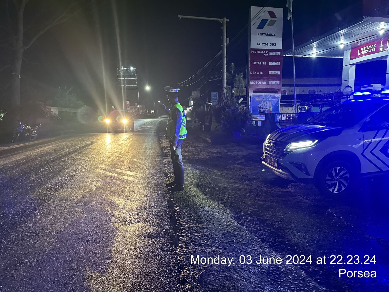 TOBA – // Jurnalis.online // Polres Toba melalui Satlantas Polres Toba, menggelar giat Patroli Blue Light, Senin (03/06/2024) malam.