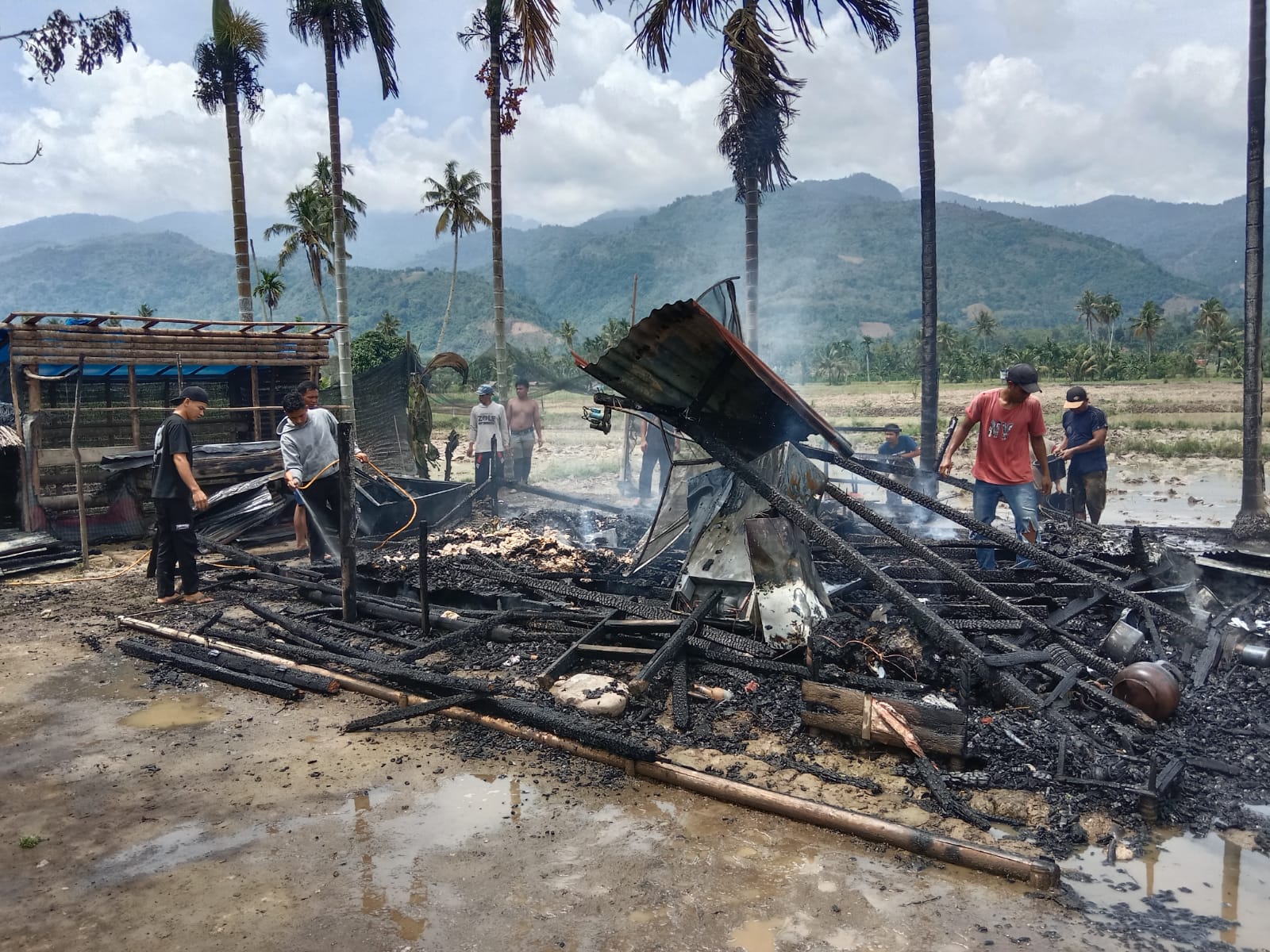 Satu unit rumah berekontruksi kayu di Desa Kuta Cingkam II, Kecamatan Lawe Alas, Kabupaten Aceh Tenggara, ludes terbakar, Rabu (25/02/2026).
