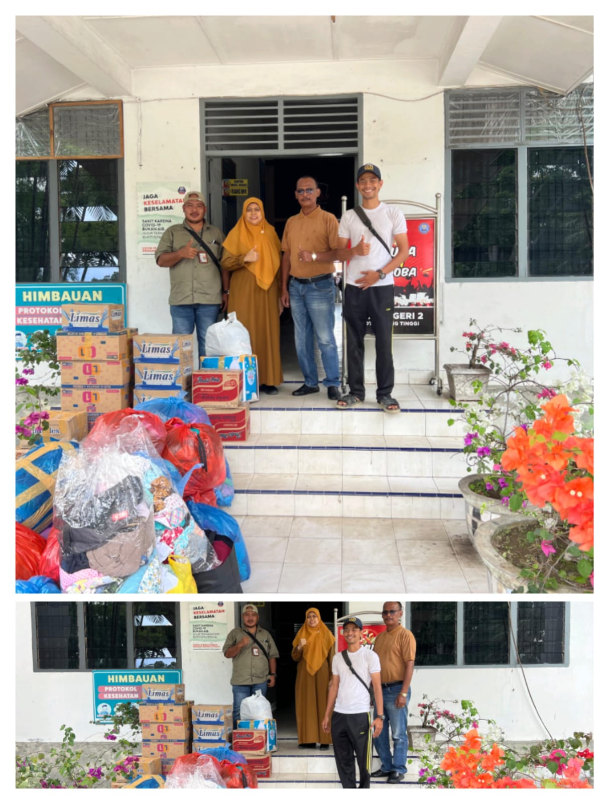 Melalui Suryadi SPD, Erdika Prasetya Sinaga SKM dan Arman Simatupang, SMKN 2 menyalurkan donasi bantuan sekitar Rp10 juta yang di salurkan berupa pakaian dan makanan kepada korban banjir yang terjadi di Aceh Tamiang, Senin (8/12/2025).