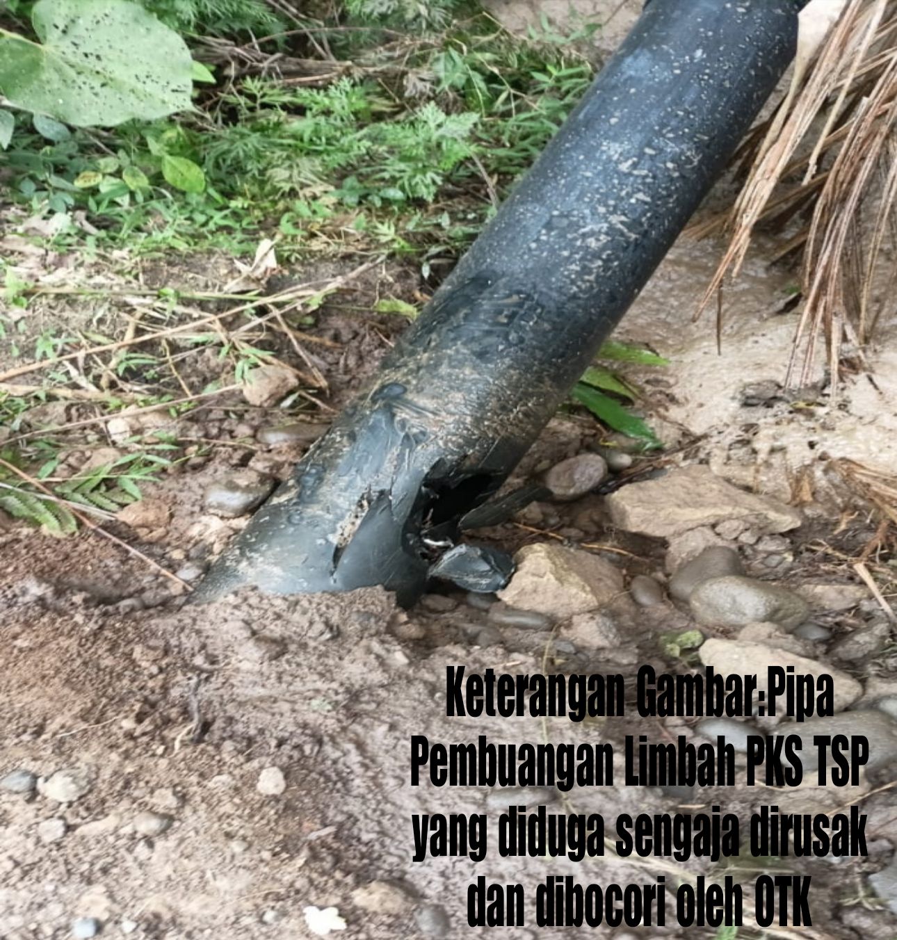 Serdang Bedagai // Jurnalis.online // Pipa instalasi pembuangan limbah produksi sawit milik Pabrik Kelapa Sawit Tenera Sergai Perkasa (PKS TSP) yang berada di Dusun Masangau Desa Silau Padang, Kecamatan Sipispis, Kabupaten Serdang Bedagai (Sergai) kembali dirusak dan dibocori oleh orang tak dikenal (OTK), Kamis (24/7/2025).