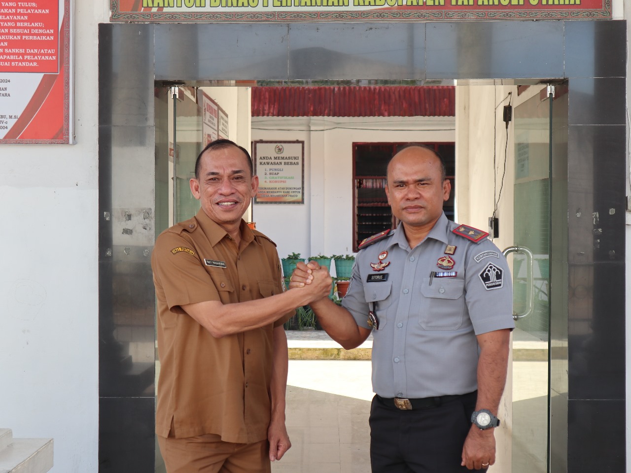 Kunjungan Kepala Rumah Tahanan Negara Kelas IIB Tarutung, Ismet Sitorus yang didampingi oleh Kepala Subseksi Pelayanan Tahanan, Jonias B. Pakpahan dan Staf pada Subseksi Pelayanan Tahanan, Ojak Hutabarat disambut hangat oleh Kepala Dinas Pertanian Kabupaten Tapanuli Utara, S.E.Y Pasaribu.
